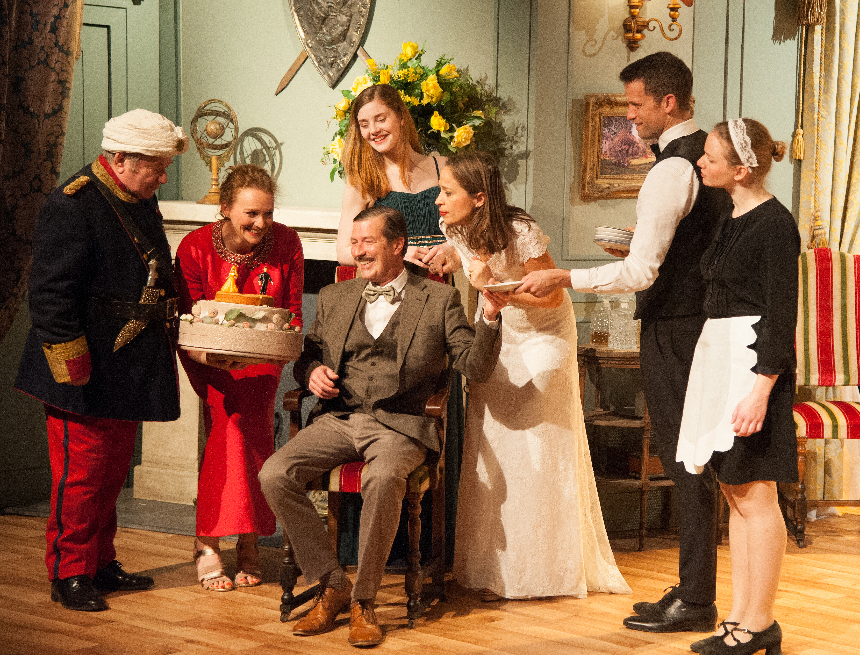 Deux domestiques très complices, aident l’inspecteur dans sa tâche de détective, quitte à s’enfermer, pour mieux espionner, dans une horloge ou une vielle cuirasse moyenâgeuse. Ah ! les châteaux écossais, leurs passages secrets, et leurs merveilleux fantômes ! Tout y est au théâtre de la Comédie Claude Volter : le five o’clock tea, le brandy et la pièce montée en sponge cake ! Bravo aussi pour les choix musicaux : depuis l’authentique bagpipe, cornemuse ou biniou, jusqu’à la valse des chevaliers de Tchaïkovski dans Roméo et Juliette. Et puis cet inénarrable uniforme militaire écossais que porte le faux laird, Michel de WARZÉE ! C’est tout le plaisir du boulevard qui revient en trombe sur la scène du théâtre de la Comédie Claude Volter qui fête royalement ses cinquante ans cette année-ci.
