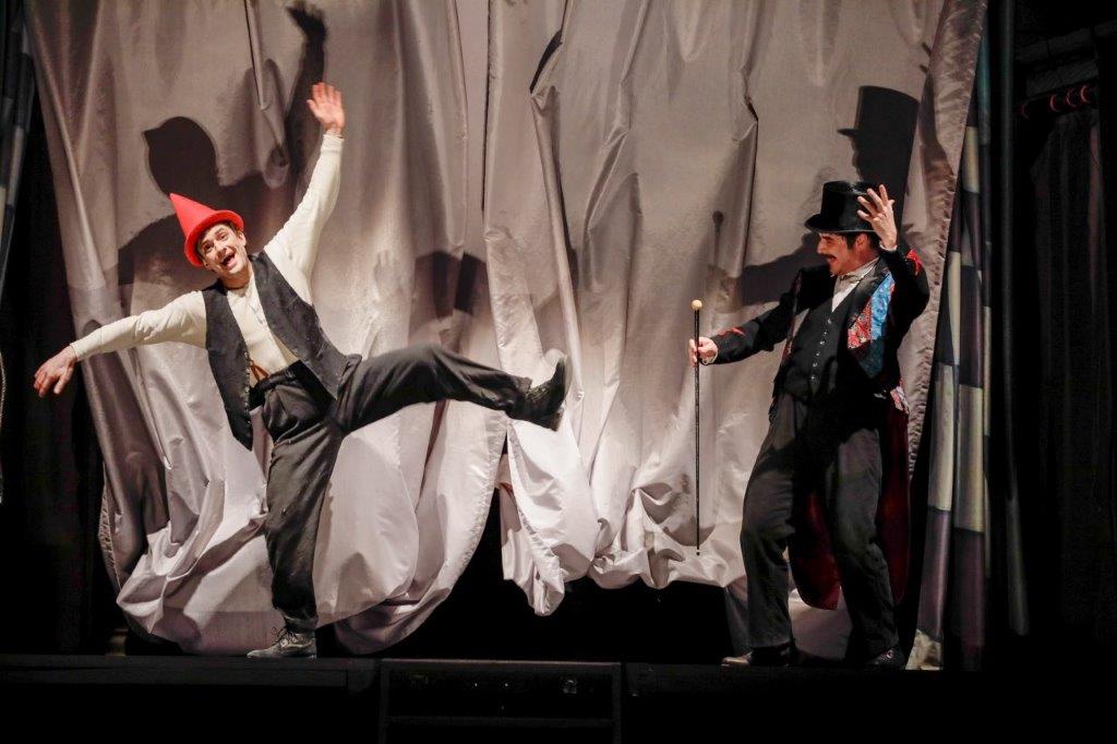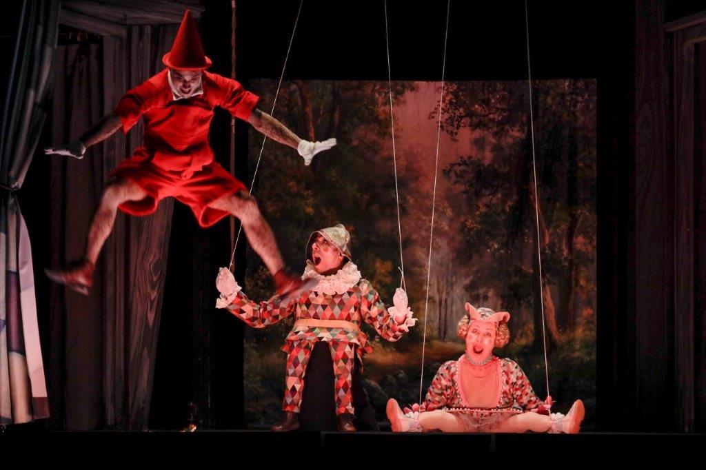 Mais, première surprise, le Pinocchio que l’on a devant les yeux est d’emblée un vif jeune homme, en chair et en os sous les traits du pétillant Julien Besure, en comédien tête d’affiche d’une tournée théâtrale du spectacle « Le avventure di Pinocchio ». Place au mystère du théâtre dans le théâtre. Les enfants sont éblouis. Et dès l’entrée de jeu, l’extraordinaire vedette du théâtre du Parc, Fabian Finkels, dans le rôle du directeur de la troupe prévient : l’histoire sera extraordinaire : vraie ou pas, c’est aux spectateurs d’en décider. Vrai ou faux ? Il promet de ne jamais mentir, de parler vrai. Mais, qu’est-ce que parler vrai ? Doit-on le croire ? Faut-il croire les deux gredins escrocs et séducteurs en carricatures de renard et de chat ? Doit-on croire la pauvresse Fée Dora dont la blessure est une morsure de chien pour avoir volé un pain? Comment fait-elle pour devenir une vraie féé bleue ? Peut-on en tomber amoureux ?