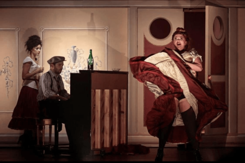 Et si notre époque est bridée par mille et un wokismes, voici donc un spectacle qui ose la baliverne, les levés de jambe, qui évoque les soirées délurées du Moulin Rouge et de la place Pigalle, ne frémit pas devant de nouveaux interdits, épouse de près les sentiments, se moque de la police – merci Gauthier Bourgeois – et célèbre une musique vibrante jouée par l’inimitable Mickey Boccar dans son rôle de Gueule d’amour. Blagueur, il joue … à cache-cache et se veut invisible jusqu’au salut final: tout pour la musique. Ce miroir de l’âme, fait littéralement corps avec l’instrument préféré de Scott Joplin, bondissant à chaque nouveau tableau sur le plateau pour sonder les coeurs et faire avancer l’intrigue.