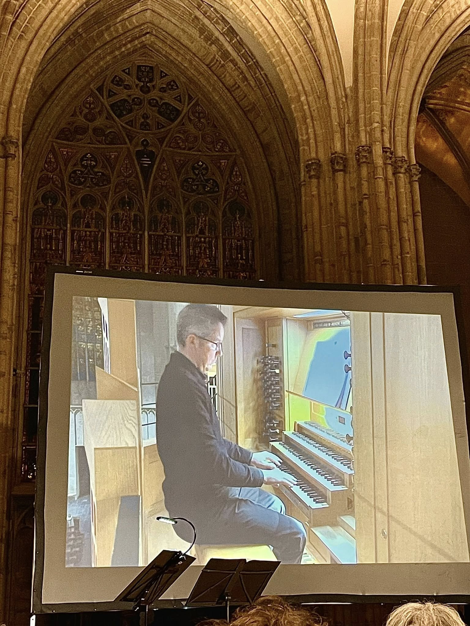 Et puis, il y a l’incontournable majesté des orgues ! Sans lâcher des yeux les Trois majestueux buffets, une Trinité musicale, on découvre l’organiste en action. Bart Jacobs, aux commandes. Mains et pieds dansant avec grâce sur 4 claviers et pédales, portés par la caméra qui projette leur virtuosité en grand écran. Les concertos pour orgue, tantôt méditatifs, tantôt enjoués, semblent des mosaïques de lumière : Bach semblant souffler au-dessus de Haendel, pour faire de la cathédrale un théâtre céleste.
