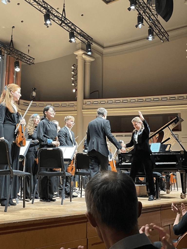 Enfin, au bout de la route, c’est l’explosion de joie finale. Après des bis rayonnants, et des éloges lancés à tous les pupitres, Kristiina Poska quitte la scène en toute simplicité laissant l’orchestre entonner à sa manière, toute la jubilation et le plaisir d’avoir tellement bien joué. On les voit rire, faire chanter dernière fois leur instrument, fanfaronner, danser, s’embrasser. Les percussions s’emballent, la fête est partout, des deux côtés de la rampe ! Et nous étions les invités. Gratitude.