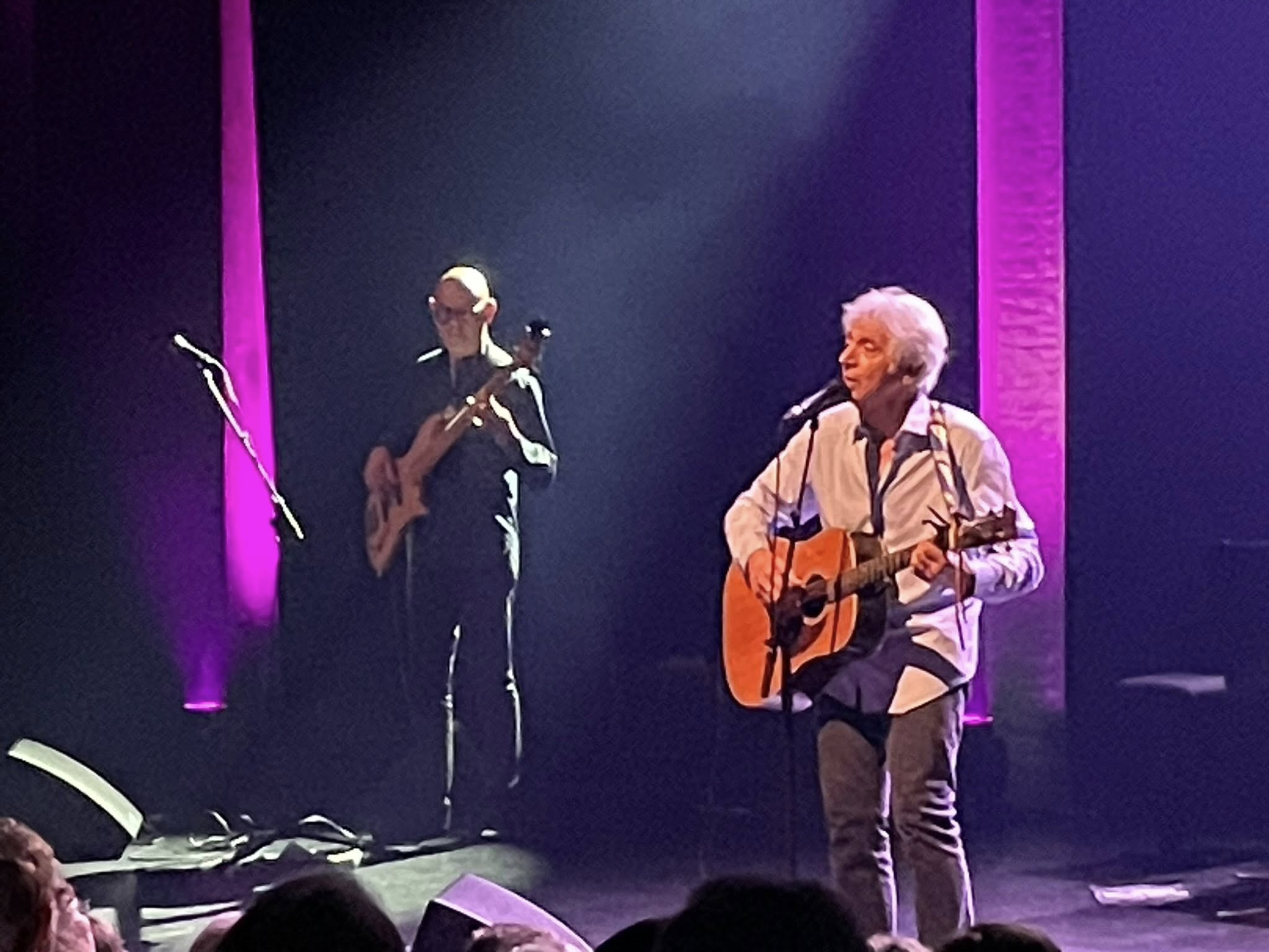 Jeudi soir, Au Centre culturel d’Auderghem, Yves Duteil n’a pas “donné un tour de chant”, il a fait salon. Et la salle entière anticipait et murmurait les refrains. Il a tenu une conversation. Dans le petit bar, il y a des semaines et des années… Une conversation douce, complice, et …presque artisanale d’un passeur de lumière. Avec cette sacrée guitare qu’il se doit d’accorder sans cesse, afin que vive sa musique, à la pointe de l’excellence. Cette fragilité du geste, loin d’être un défaut, pourrait bien être une métaphore : rien n’est jamais définitivement accordé. Ni les cordes. Ni les cœurs. Et puis, sourire en coin, une guitare, c’est plus facile à accorder qu’une harpe !