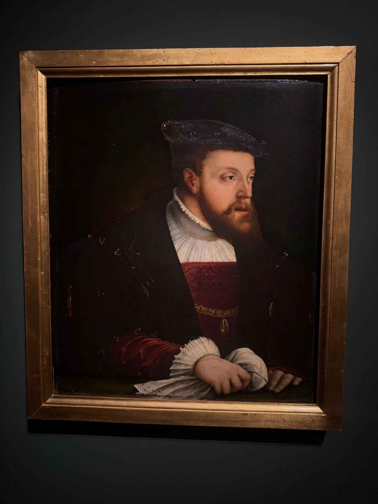 Embellir parfois, juste pour … servir le pouvoir. Lors de cette exposition, on découvre Titien en train d’améliorer le portrait de l’empereur Charles Quint, geste qui peut s’interpréter comme une marque de respect ou de soumission. L’empereur avait tendance à garder la bouche entrouverte et le menton relâché, ce qui n’était pas très flatteur. Titien, avec délicatesse, corrige ces détails pour préserver l’image de puissance, de vertu et de noblesse du souverain. Au XVIe siècle, le portrait va bien au-delà d’une simple représentation : il devient un outil de propagande et un symbole de légitimité politique. Les monarques européens, parfaitement conscients du pouvoir de leur image, font réaliser des portraits officiels qui circulent à travers le continent. Titien maîtrise cet art, combinant réalisme, symboles et une mise en scène qui valorise l’autorité.